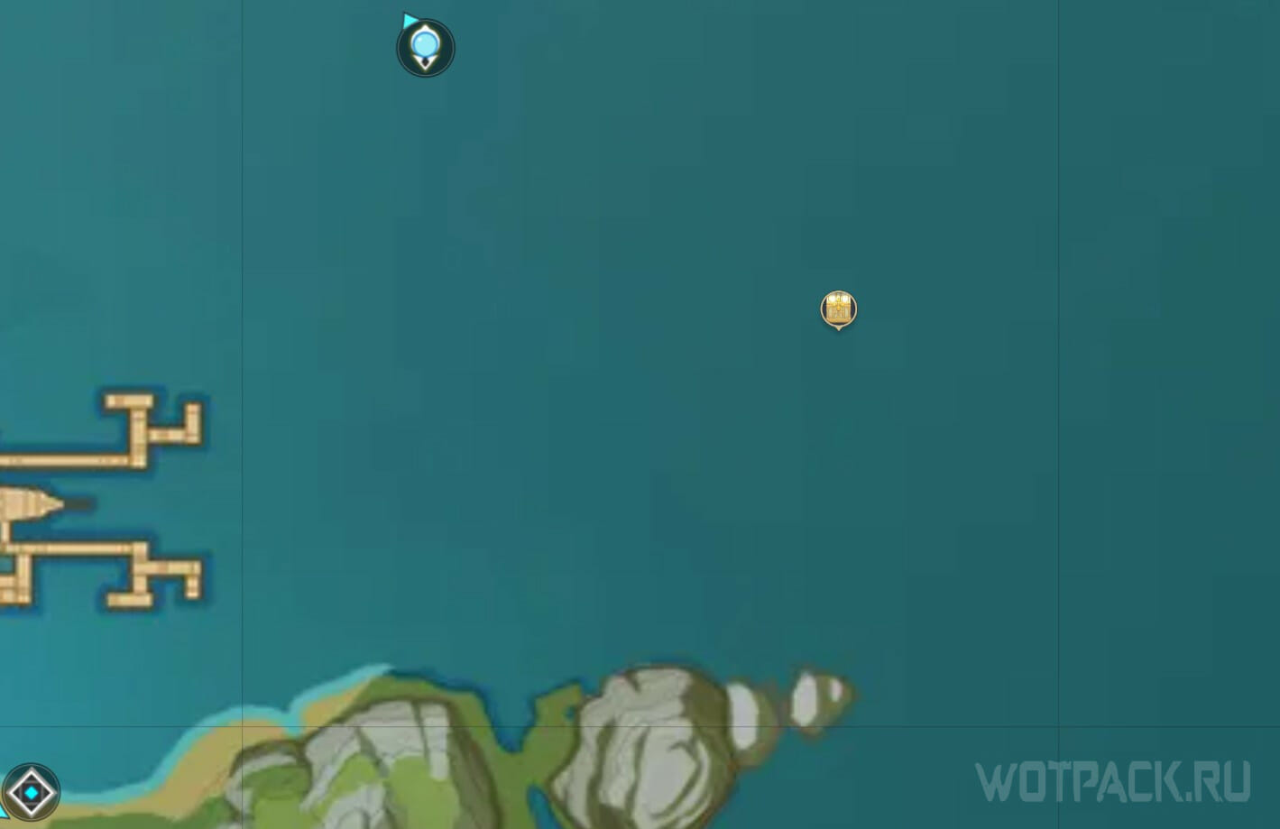 Внутри, на небольшом каменном островке, обнаружите сокровище.