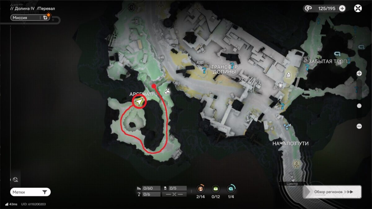 На территории Перевала можно найти только одну поляну с ресурсом: она расположена на возвышенности Арсенала.