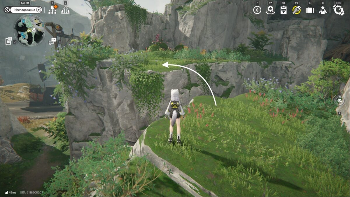 Перепрыгните через обрыв, соберите растение и создайте короткий путь до местности, активировав трос.