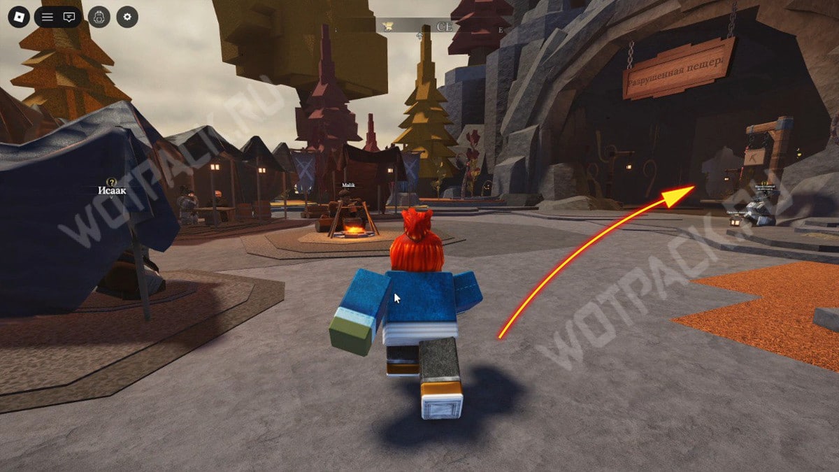 - В стороне от лагеря заметите свисающую табличку с названием шахты.