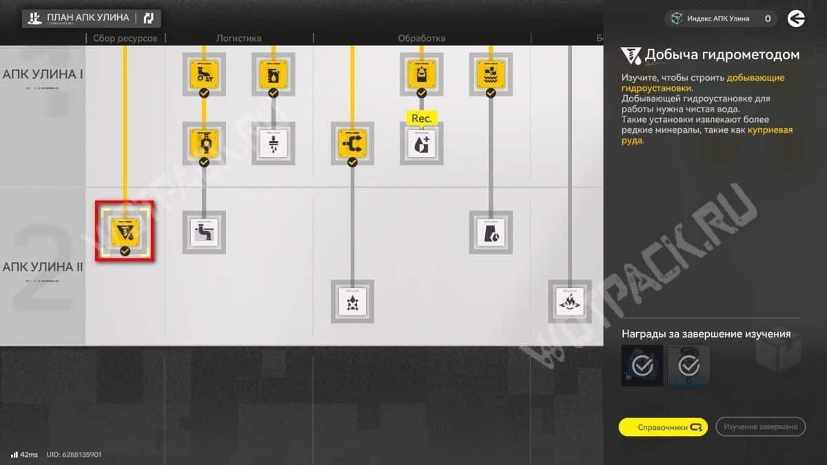 Для куприевой руды в Улине нужны специальные установки, работающие на воде. Для их изготовления изучите «Добычу гидрометодом». Рецепт открывается по мере прохождения основного сюжета долины Циньбо «Давняя вражда».