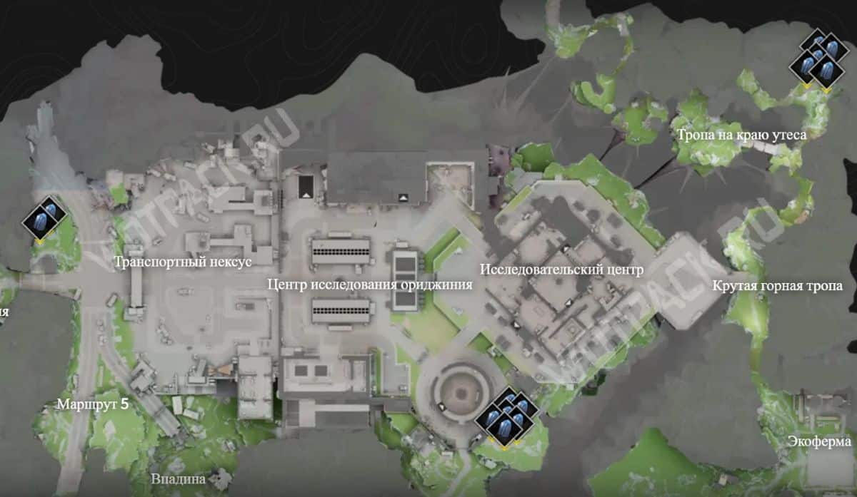 В стартовой локации находится 17 месторождений. Чтобы попасть к месту на Вершине горы, придется обойти кругом через Общежитие рабочих и Горную обходную тропу.