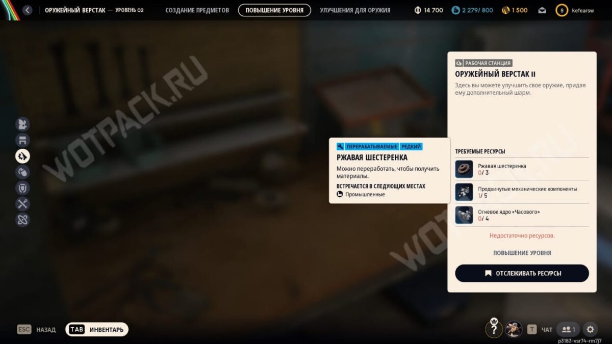 Проржавевшие запчасти используются только для улучшения оружейного верстака до третьего уровня. Кроме них ещё понадобятся продвинутые механические компоненты и огневые ядра «Часового».