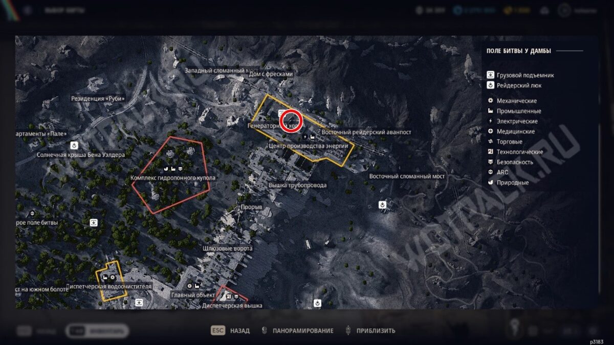- Техническое крыло — красная зона под складским комплексом является наиболее популярным местом у рейдеров, ищущих шестерни.