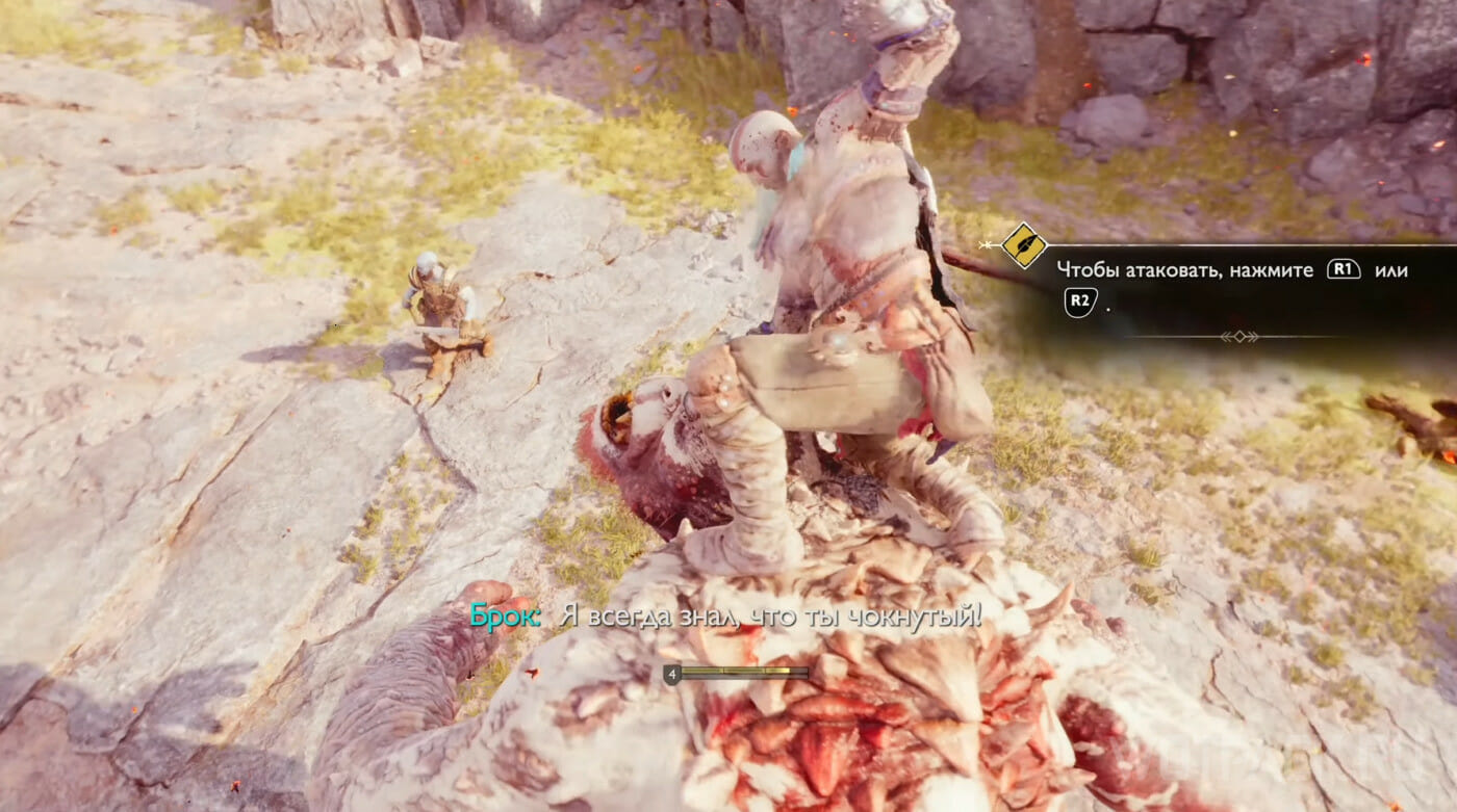 Следующий самоцвет Иггдрасиля удастся получить чуть позже во время прохождения сюжетной главы Кузница. Необходимо выбраться на самую вершину локации (уже после кат-сцены с Девой). Пройдите по тонкому выступу вместе с Броком и обнаружите плато, в дальней части которого стоит огромный огр.