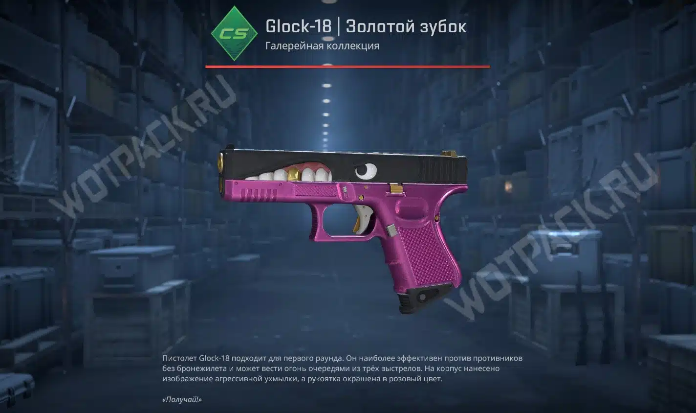 | Glock-18 | Золотой зубок | 3689 ₽ | 2316 ₽ | 2665 ₽ | 2691 ₽ |