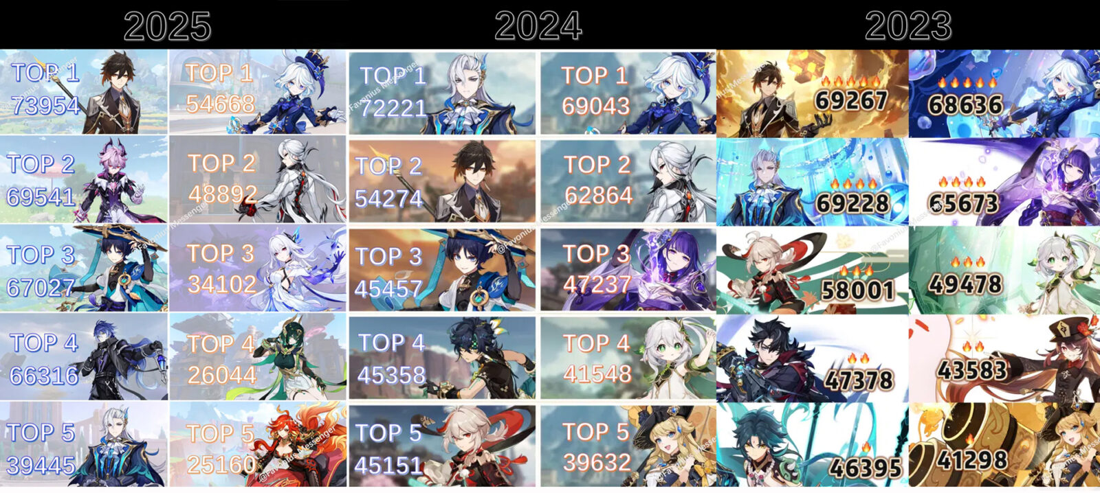 - «Скарамучча» Странник (67 027), часто появляющийся в топах.