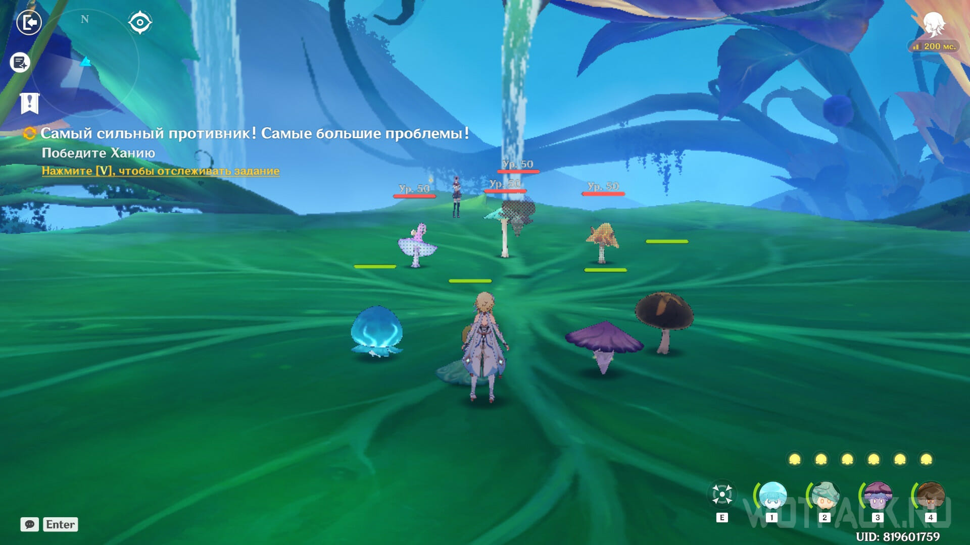 Составить уникальную команду из собственных питомцев не получится. В отряде обязательно должны присутствовать Гидро плесенник «Бам-бам шапочка», Анемо Кручезверь Лайлы и Электро Громоверт Яэ Мико. Самостоятельно можно будет выбрать лишь последний слот группы. Хорошим выбором станет Дендро гриб для элементальных реакций или Гео плесенник для мощной атаки сверху по скученным противникам.