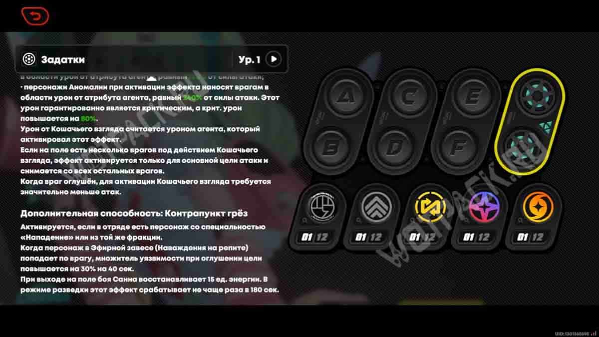 Гайд на Санну в Zenless Zone Zero с разбором усиливающих статусов и эффекта «Кошачий взгляд». Разворачивая на поле эфирную завесу «Наваждение на репите» и накладывая эффект «Ангельская гармония», девушка даёт всем соратникам огромный бонус к АТК. Она способна наносить дамаг из кармана и давать своим напарникам возможность совершать взрыв атрибута на противнике после проведения серии ударов.