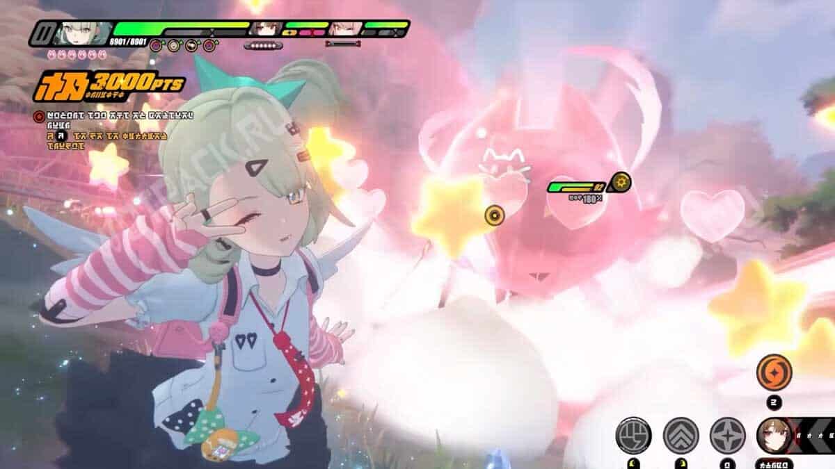 - Базовая атака (б/а): стандартная комбинация ударов с встроенной пассивкой. Изначально есть 6 слотов для заряда «Когтеточки», которые расходуются для проведения удара Пузырькой, когда девушка находится в кармане и на поле нет врагов со статусом «Кошачий взгляд».