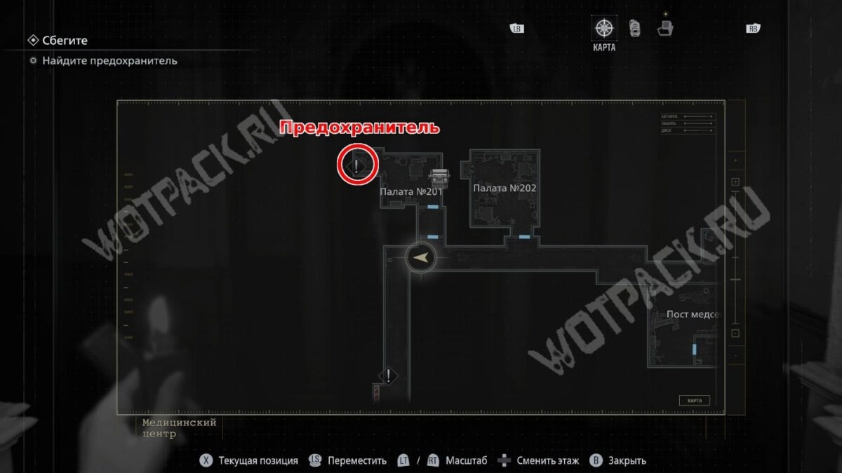 Идите на пост — дверь находится напротив комнаты, где очнулась Грэйс. Пройдя через комнату персонала, откройте дверь. После осмотра покойника впервые встретитесь с жутким существом.