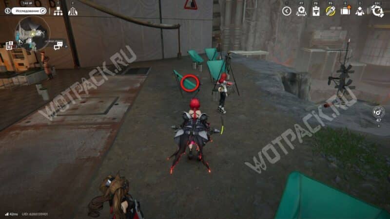 Около ресторана к северу от точки ТП на стуле лежит «Черновик рецензии».