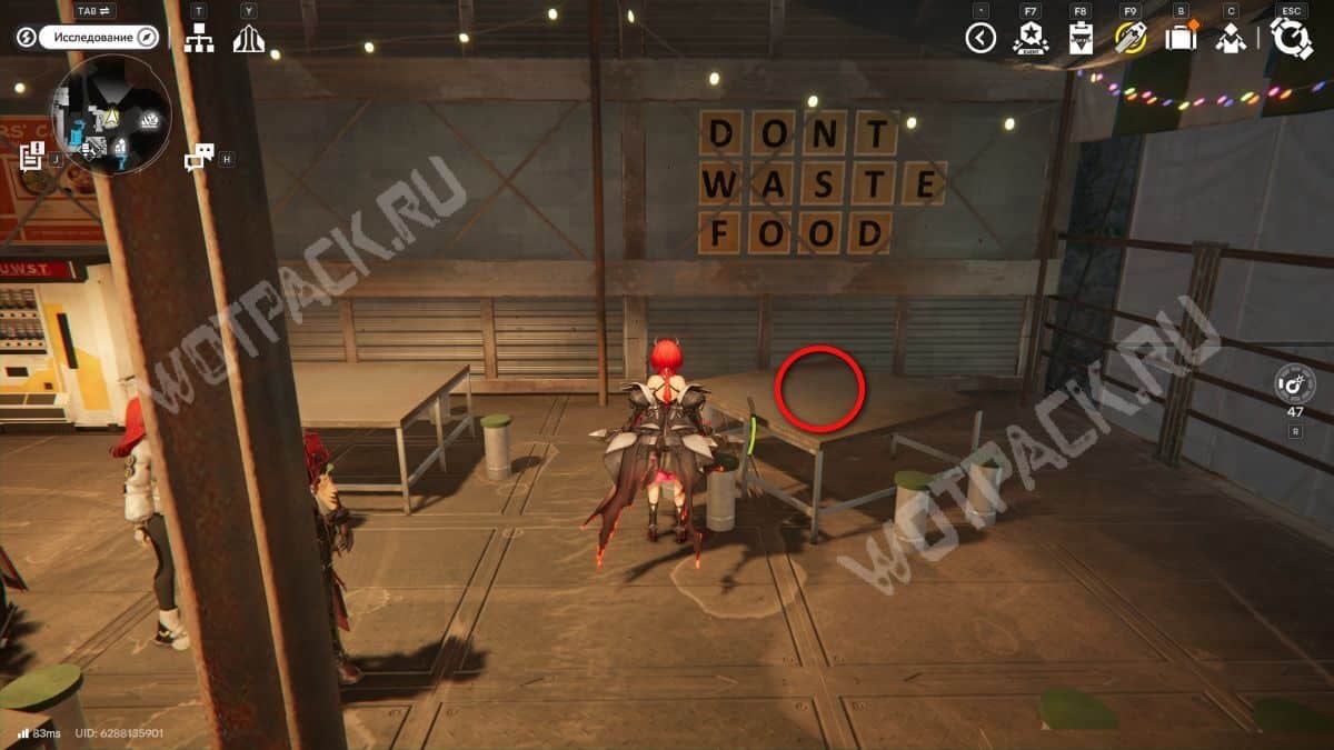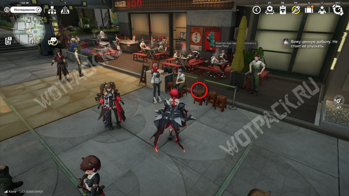 Около ресторана к северу от точки ТП на стуле лежит «Черновик рецензии».