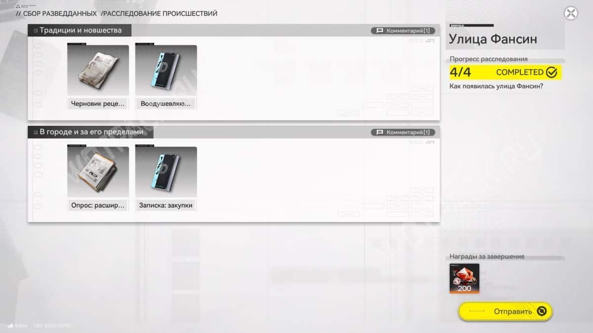 Награду получите после сбора 4 зацепок зоне, где проходила сюжетная миссия «Сквозь дымку».