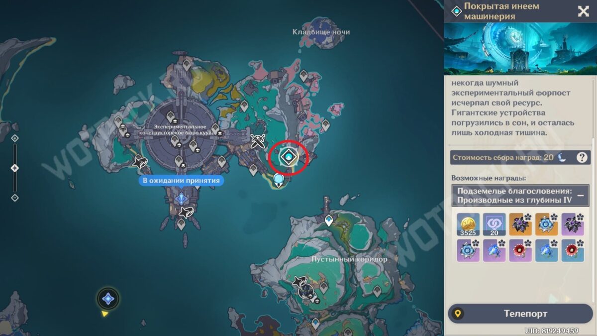Комплект можно фармить в подземелье артефактов Покрытая инеем машинерия на территории Нод-Края. У данжа есть несколько уровней сложности с варьирующейся редкостью наград. Для получения 5⭐ артефактов необходимо проходить IV.