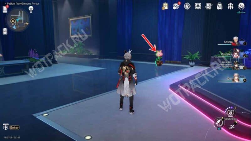 От телепорта «Башня Общего желания» зайдите внутрь здания. По пути к лифту наткнетесь на розовый цветок, с которым требуется поговорить, чтобы начать сражение и раскрыть енота.
