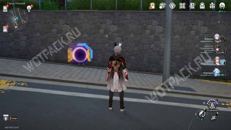 Вход в 2D-пространство найдёте в центральной части карты справа от Чашелиста «Бутон эфира». Заберитесь внутрь трубы и сразу пройдите в портал, где двигайтесь вправо вплоть до встречи с енотом.