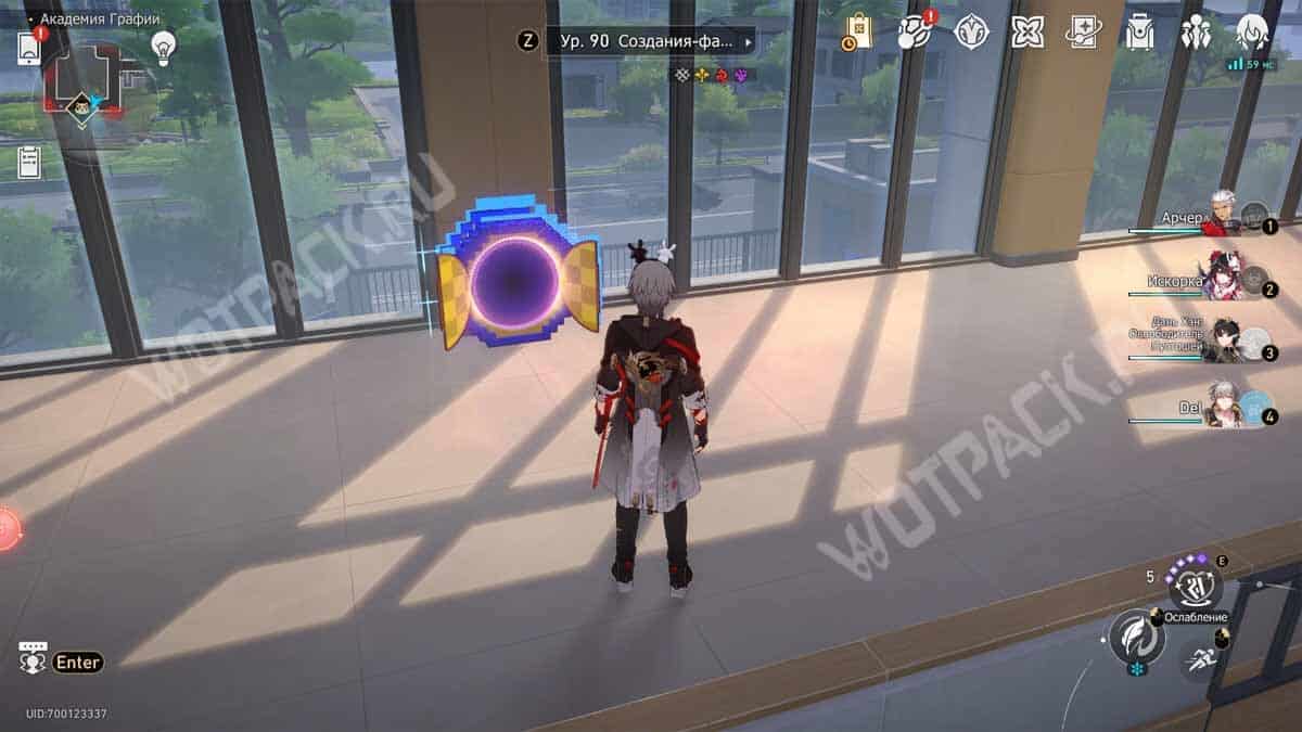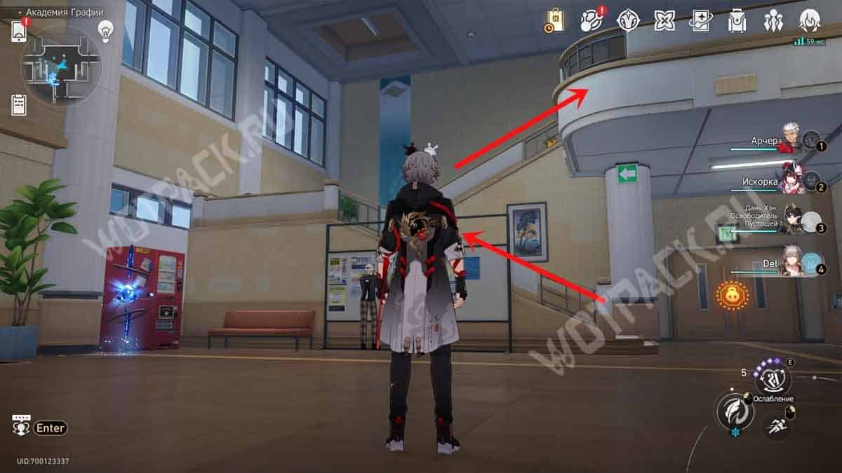 Поднимитесь на второй этаж южного крыла университета или воспользуйтесь телепортом «Класс искусств» и заберитесь в двухмерный портал между окнами.