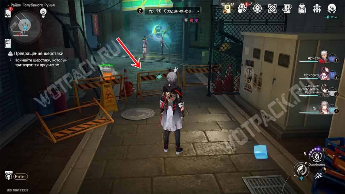 Поднимитесь на 2 этаж от точки «Холл учебного заведения» и отыщите фигуру у стенда, похожую по внешности на протагониста. После беседы начнется сражение с шерстяным проказником.
