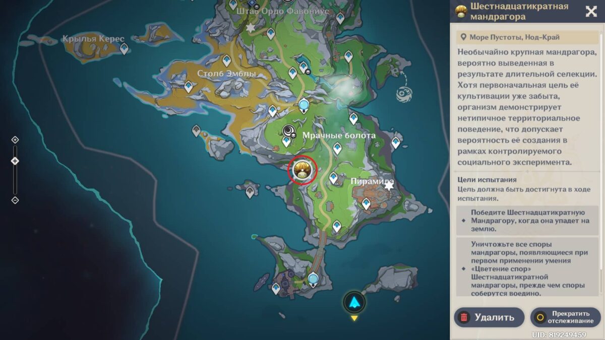 В Genshin Impact особый противник Шестнадцатикратная мандрагора — мутировавшее разумное растение и местная легенда Нод-Края. Уникальный лабораторный образец, в отличие от обычных представителей культуры, выделяется не только крупным размером, но и крайне агрессивным поведением.