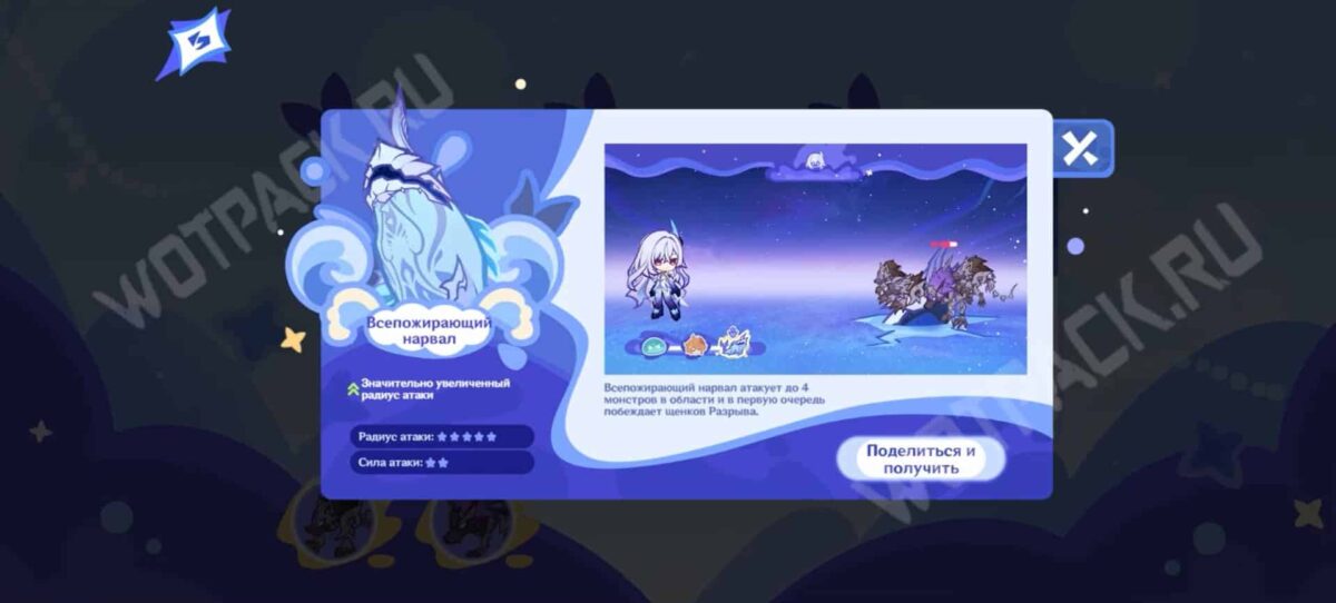 Если пригласите в свой отряд кита, то дополнительно получите 20 примогемов и обои со Скирк.