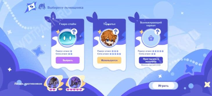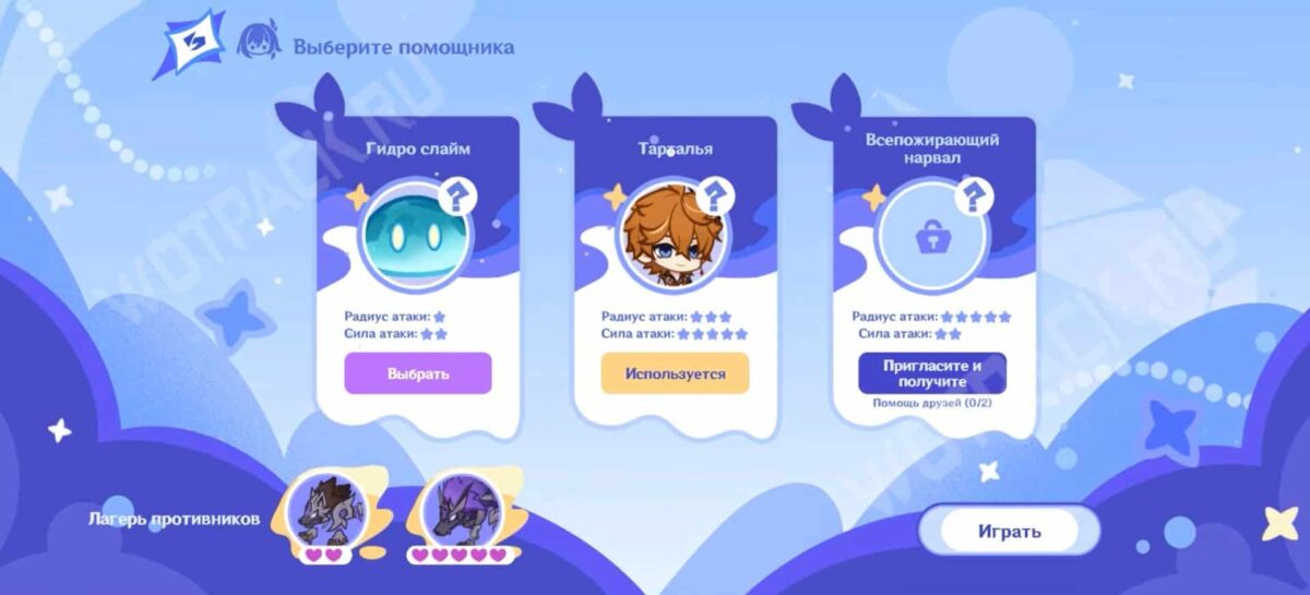 Помимо него, в сражении можно использовать Гидро слайма и Всепожирающего нарвала, но, чтобы открыть последнего, необходимо пригласить двух любых игроков присоединиться, отправив им ссылки.