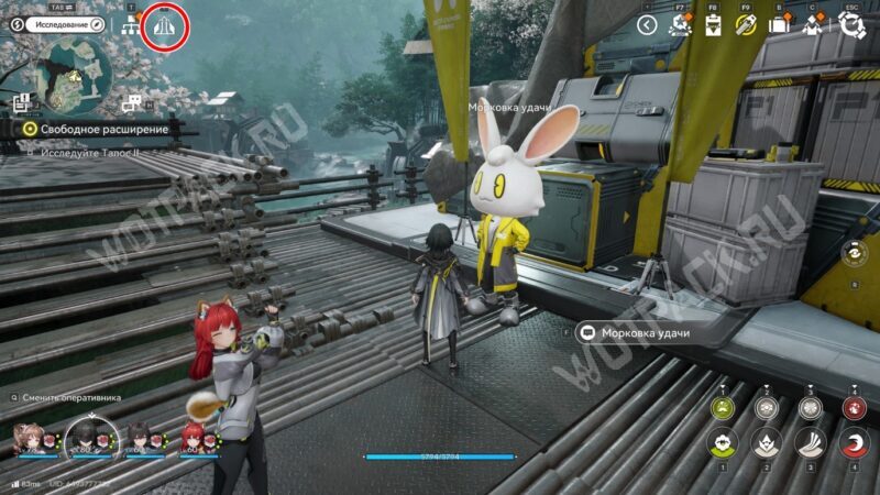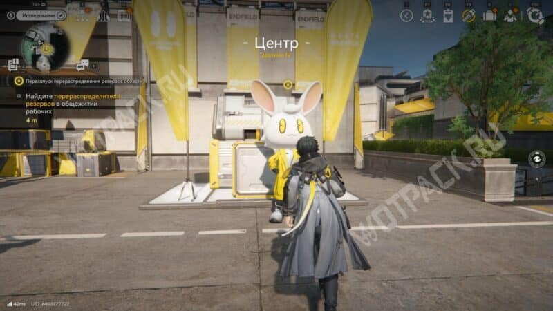 Отправляйтесь к точке ТП у общежития рабочих в Центре и поговорите с Морковкой удачи — NPC в большой кроличьей маске.