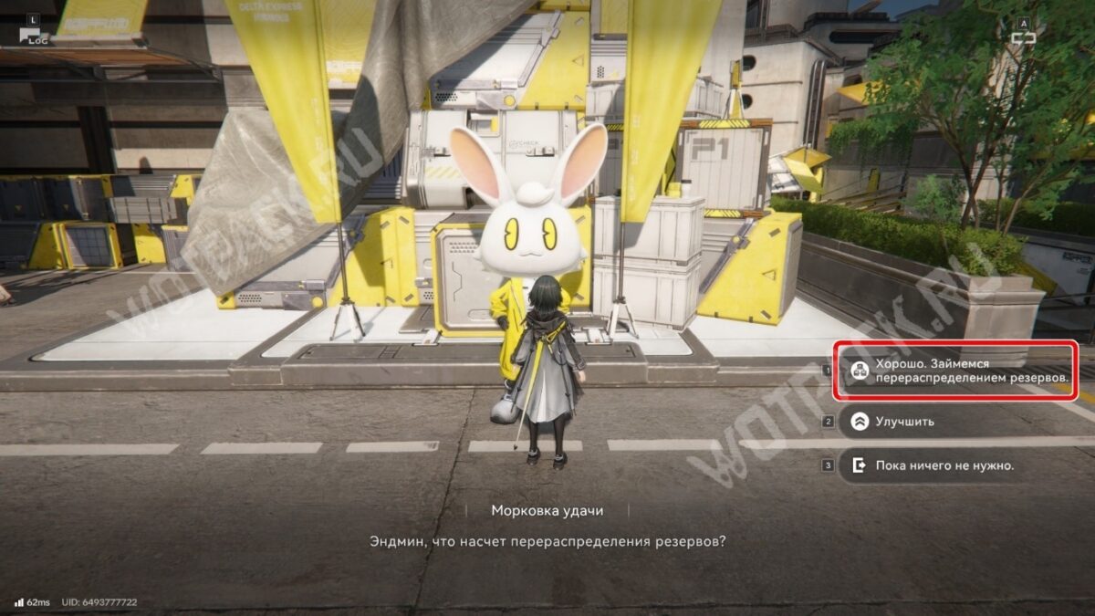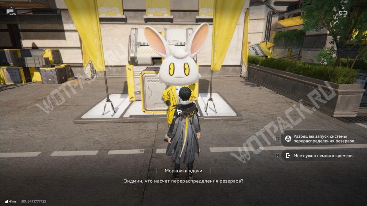Отправляйтесь к точке ТП у общежития рабочих в Центре и поговорите с Морковкой удачи — NPC в большой кроличьей маске.