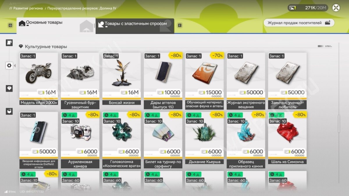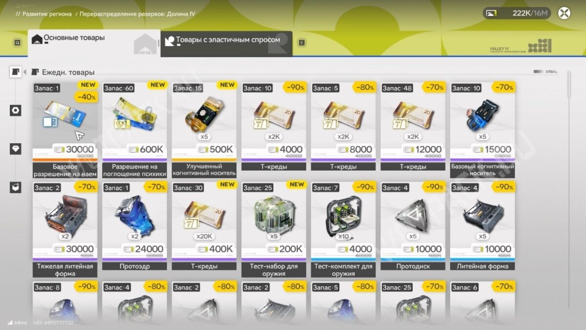Перераспределение резервов области — система, открывающая широкие возможности торговли за облигации в Arknights: Endfield. В меню магазина можно покупать ценности для себя и перепродавать товары для быстрого заработка. Развитие резервной сети повышает показатель уровня региона и расширяет ассортимент магазина.