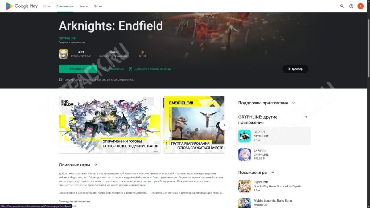 Узнать, можно ли установить Эндфилд на своё устройство Андроид, возможно на страничке проекта в Google Play. Если телефон официально поддерживается, магазин приложений сообщит это и позволит нажать кнопку «Установить».