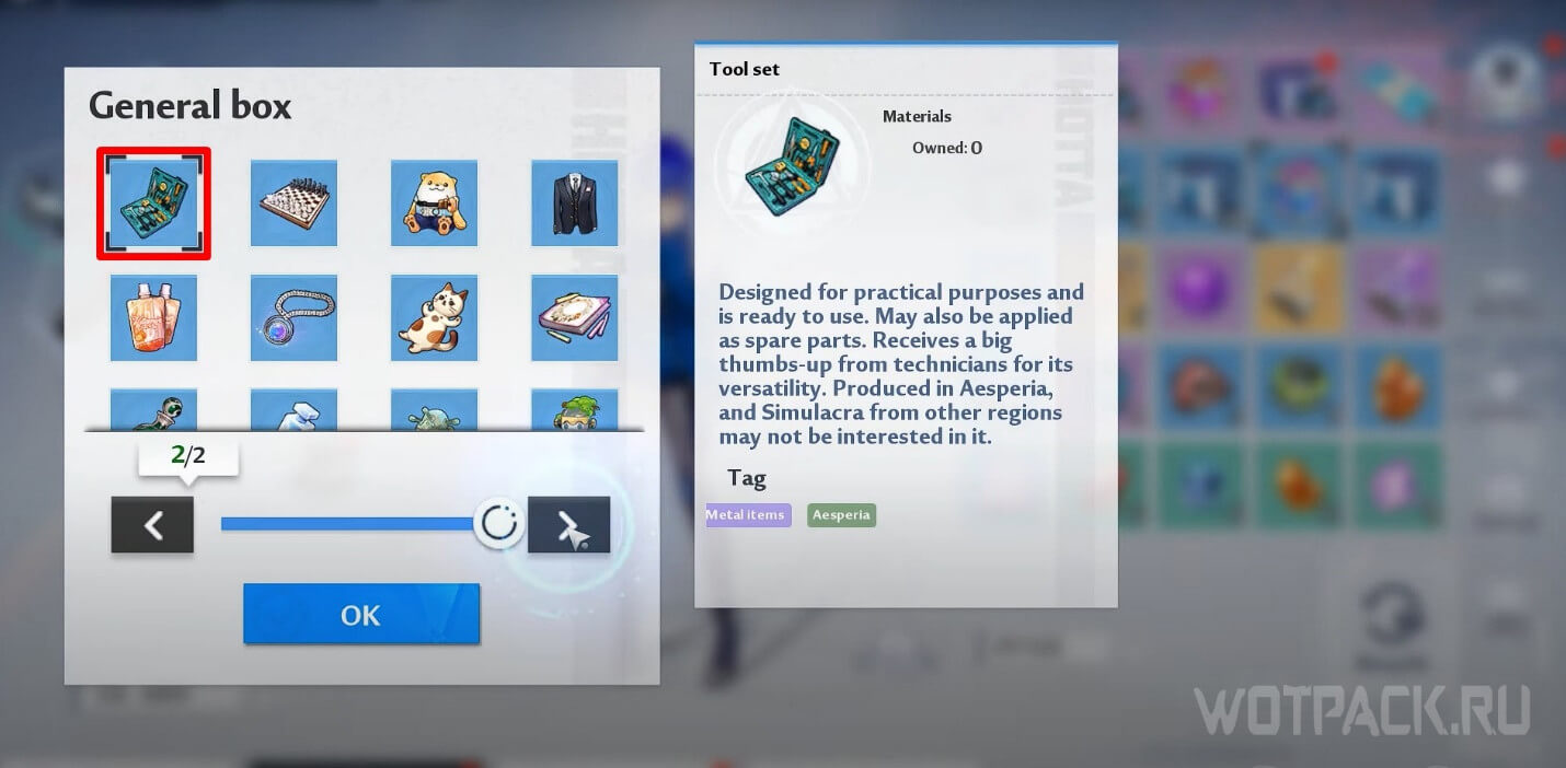 Набор инструментов – это подарок, который продается в магазине «Commissary». Он также пригодится для квеста. Приобретите синюю коробку «Fine gift» и выберите Materials x2.