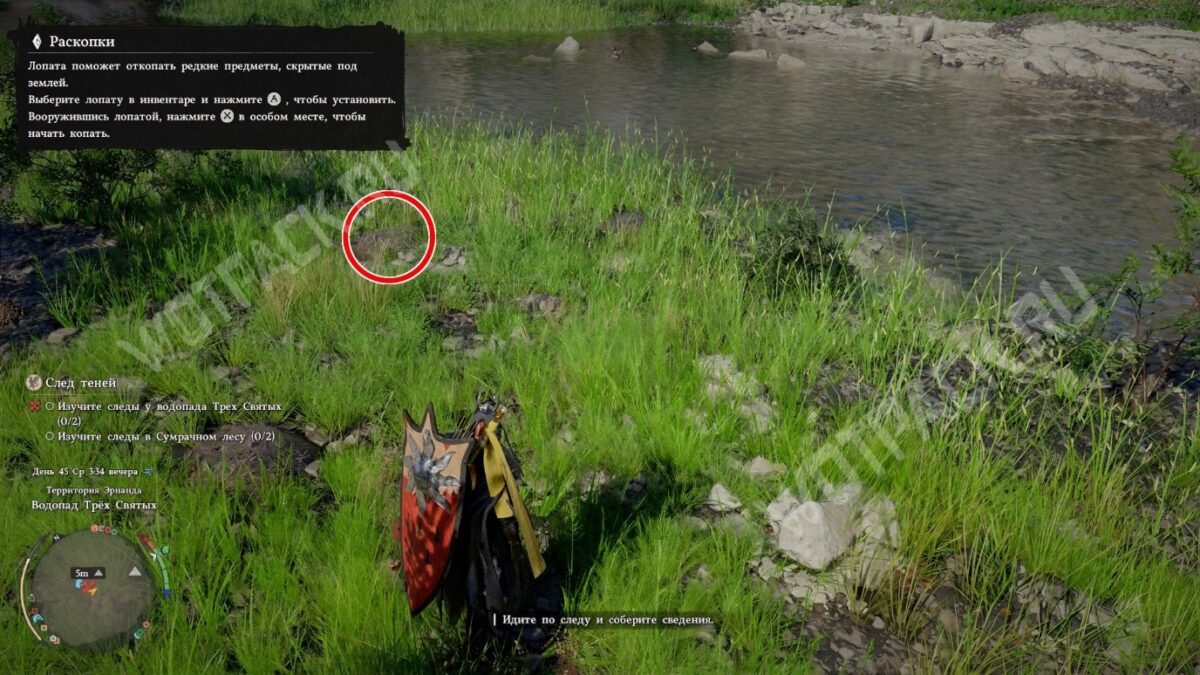 Загадки вора ведут в два новых места: к водопаду Трёх Святых и к руинам с чёрно-белыми камнями. Отправляясь на поиски, убедитесь, что в инвентаре есть лопата и фонарь для подсвечивания подсказок.