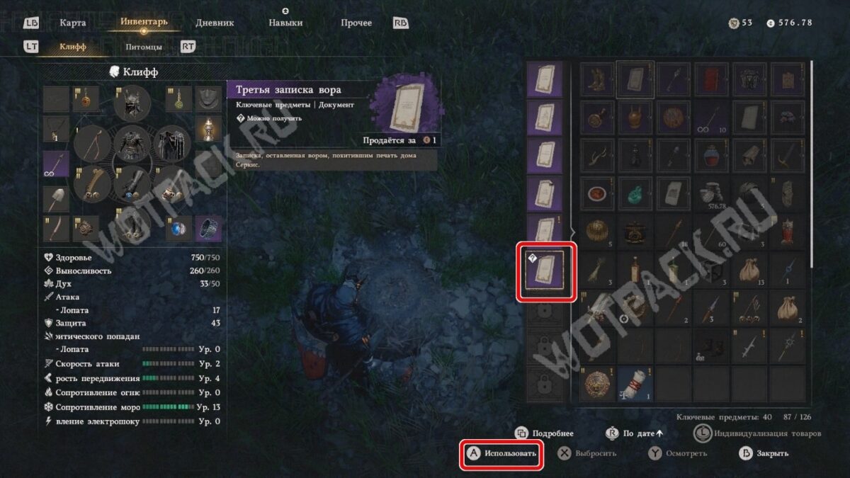 После раскопок получите документ «Третья записка вора». Откройте инвентарь, найдите её и нажмите кнопку «Использовать», чтобы прочесть. Как только изучите письмо, цель будет выполнена.