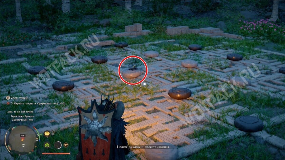 Возвращайтесь к маркизу в поместье Оукеншилд и вместе разберите зацепки. Сразу после этого запустится продолжение истории — «Где сходится все». Но перед продолжением истории рекомендуем пройти по Сумрачному лесу и решить загадку с каменными столбами, чтобы получить ещё одно очко навыков. Больше подобных испытаний можно найти с помощью интерактивной карты.