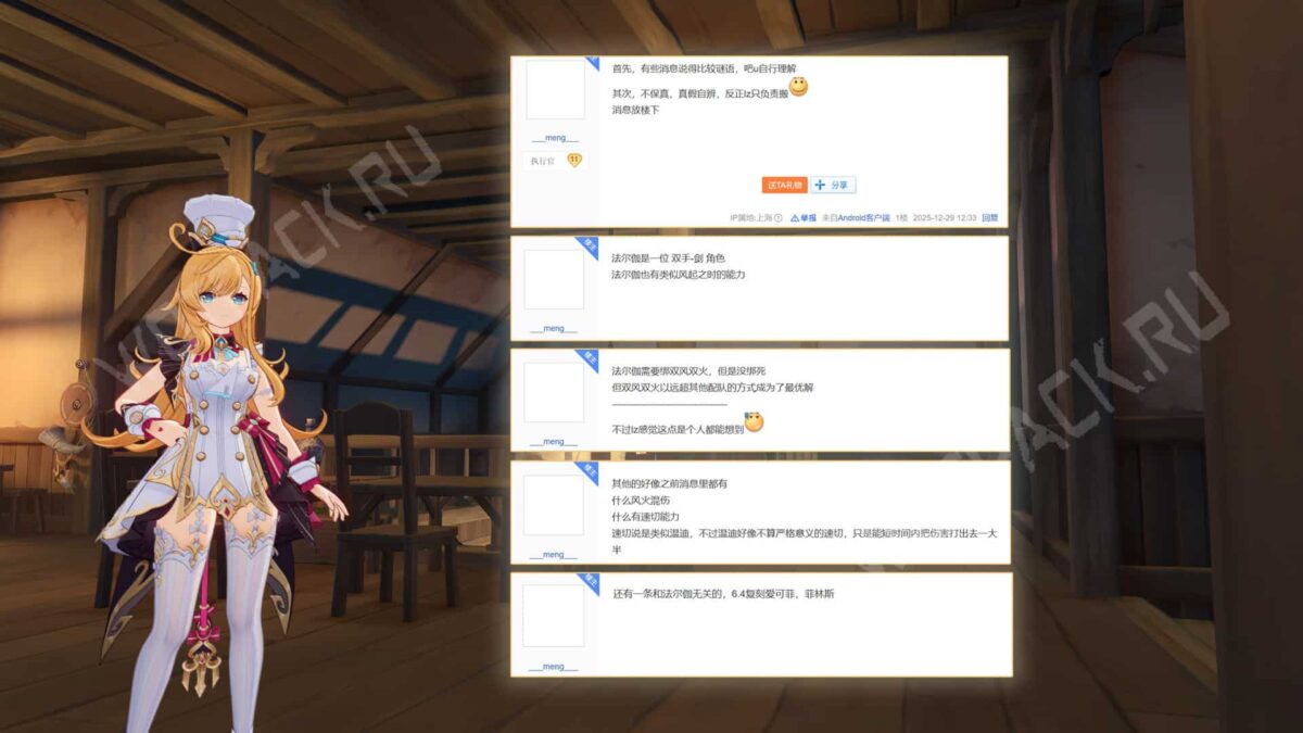 Достоверный инсайдер meng поделился информацией про способности магистра Варки и назвал персонажей, которых вернут в обновлении 6.4. Обычно его сведения верные, однако он не гарантирует подлинность этих слухов по Genshin Impact, поэтому пока что относитесь к ним скептически.