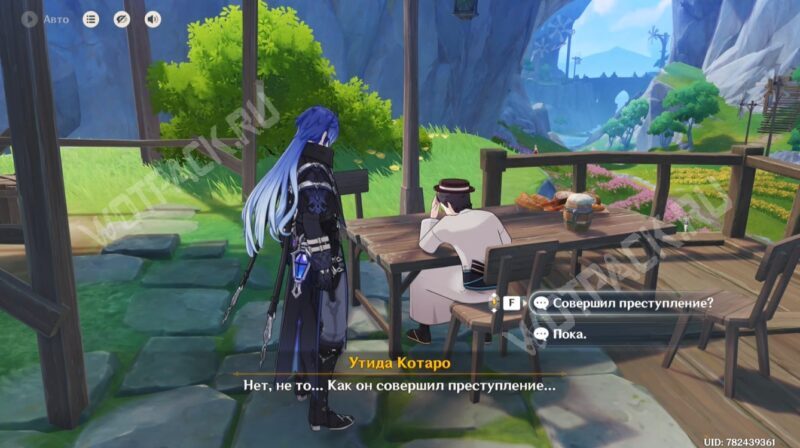 Паймон предложит найти преступника и расспросить людей в ближайшей таверне. Здесь обнаружите вице-капитана роты стрелков Лоэна и Утиду Котаро, который разговаривает сам с собой. Одному из них можно отдать найденный предмет.