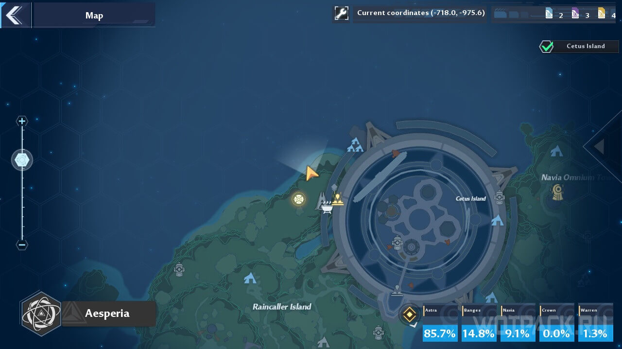 Расположение телескопов в Tower of Fantasy