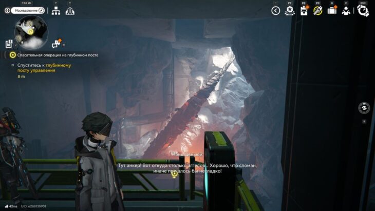 После диалога воспользуйтесь подъемником и опуститесь вниз. Опускайтесь, пока не достигнете -1-го этажа и не увидите источник проблем — анкер, из-за которого в зоне появились аггелы.