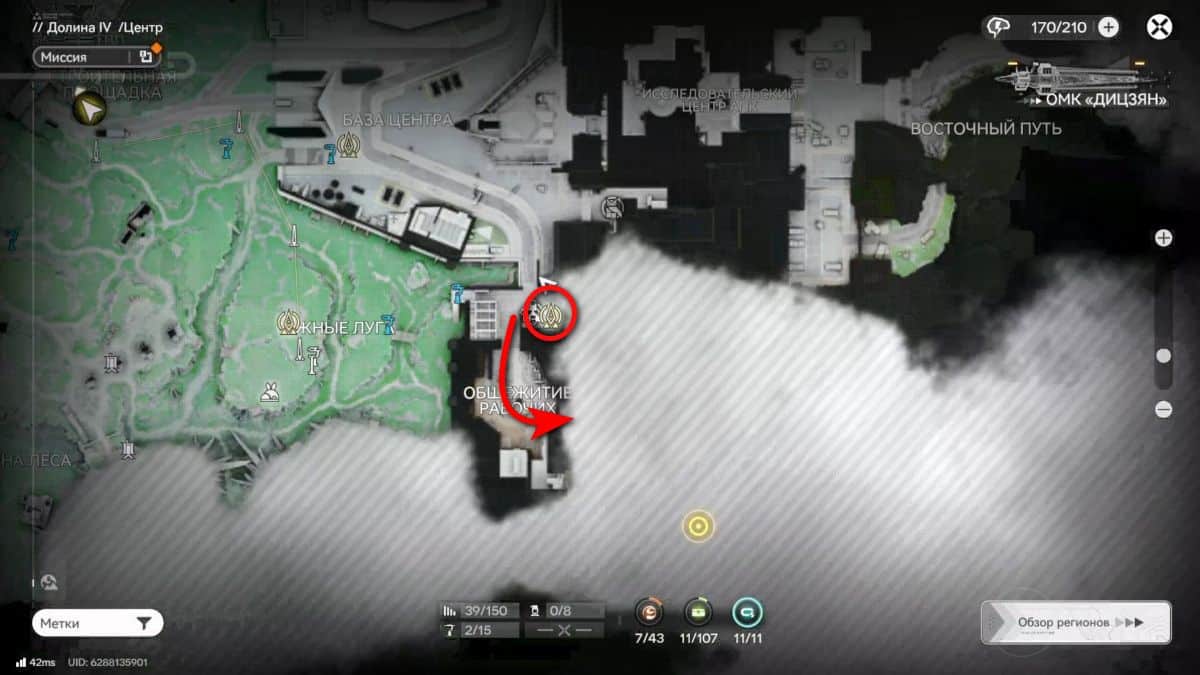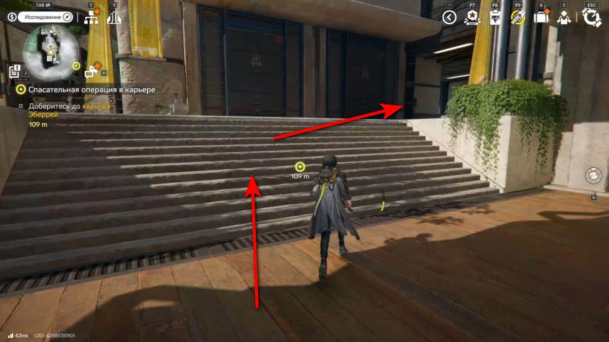 Добраться до области можно от точки ТП в Общежитии рабочих центра на юго-востоке карты. От нее развернитесь в сторону торгового квартала и двигайтесь прямо, пока не увидите две лестницы.