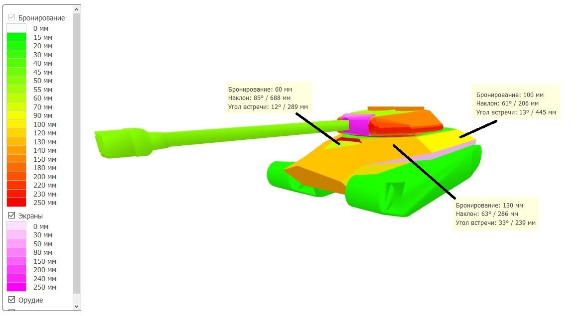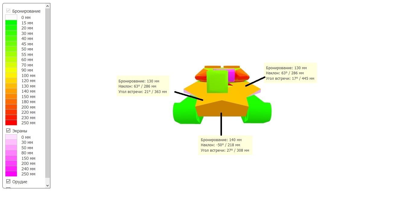 Верхняя лобовая деталь в форме «щучьего носа», поэтому несмотря на номинальные 130 мм, приведенка там доходит до 380-500 мм. Главное в этом деле не перекрутить корпус, потому что тогда непробиваемый «Защитник» в одночасье превращается в «Защечника» (сбоку «щучий нос» пробивается легко, так как теряет почти все приведенку).