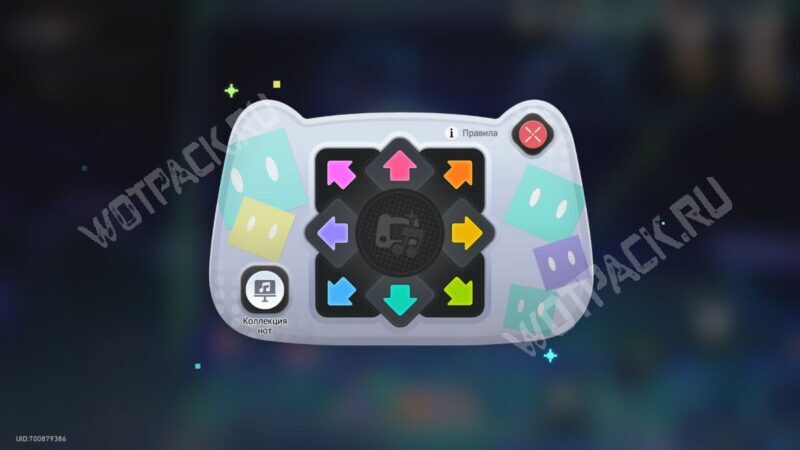Пройдите испытание, обращая внимание на полосу внизу, где в рандомном порядке будут появляться оранжевые стрелки. Если повторить их на музыкальном автомате, то получится существующая комбинация.