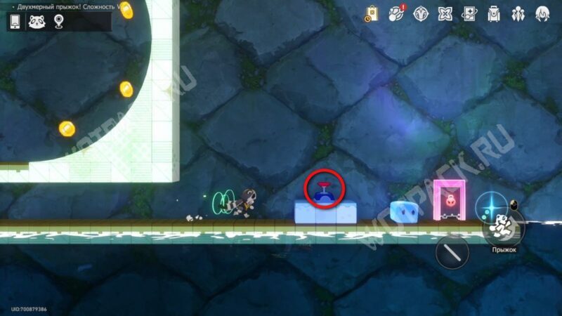 После телепортации продолжайте подниматься выше, прыгая над шипами. Снова нажмите на кнопку и получите достижение «Вариация рая: Ундина».