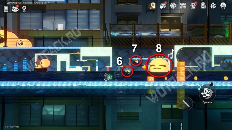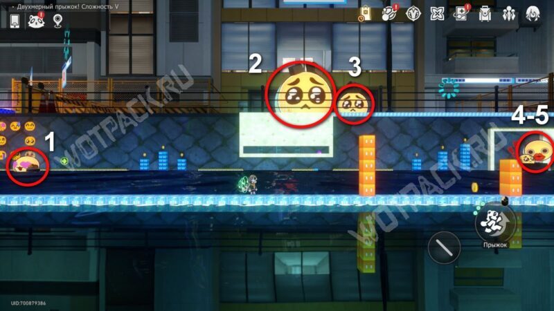 Перейдите на «@Площадь развлечений» и осмотрите восточную зону у кафе и киосков — внутри «Двухмерный прыжок! Сложность III» находится ещё один уровень с колонками.