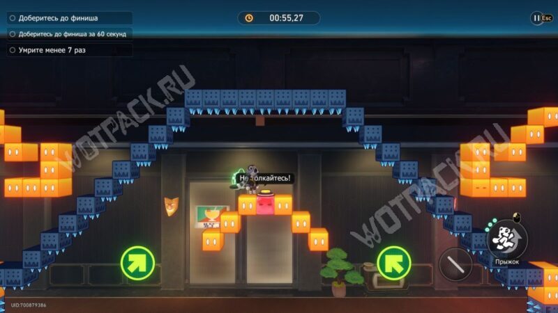 В открывшемся пространстве потребуется пройти несколько полос препятствий с исчезающими время от времени плитами.