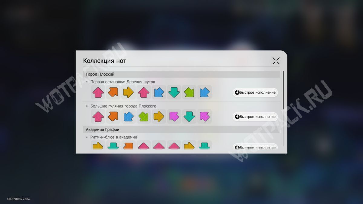 В полупустом подпространстве сможете активировать партитуру из коллекции нот или сыграть музыку самостоятельно: ↑ ↗ ↙ ↘ → ↖ ↑ ↖.
