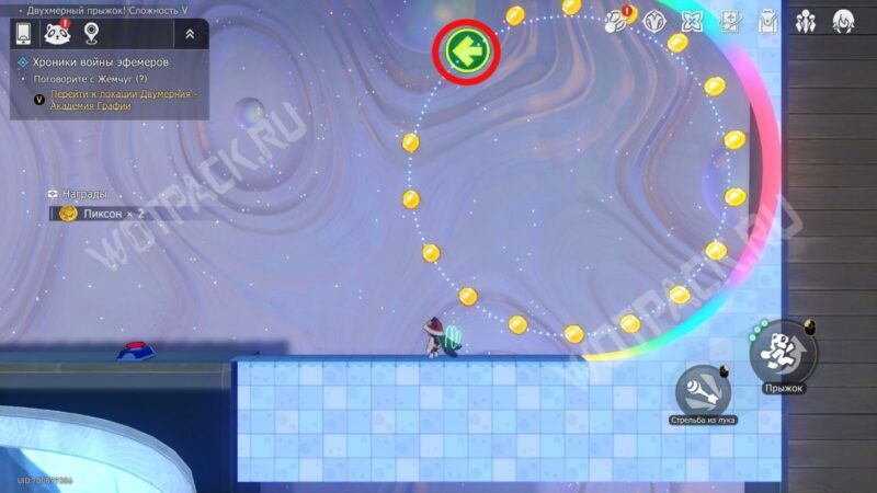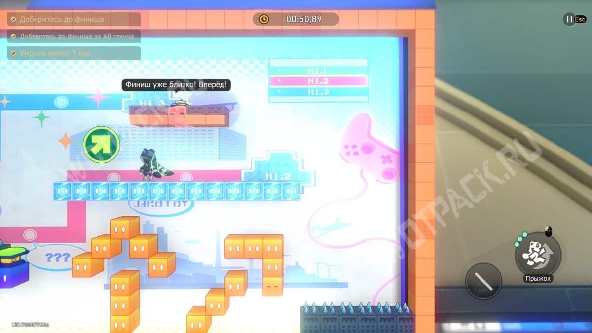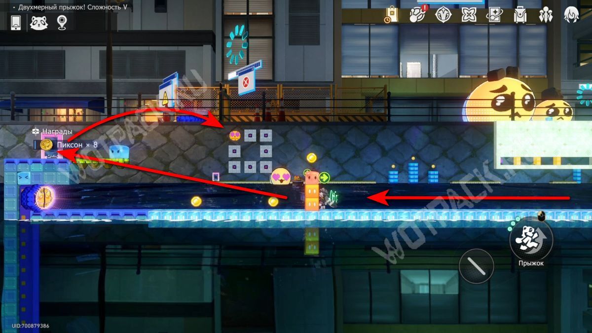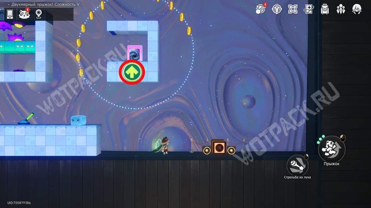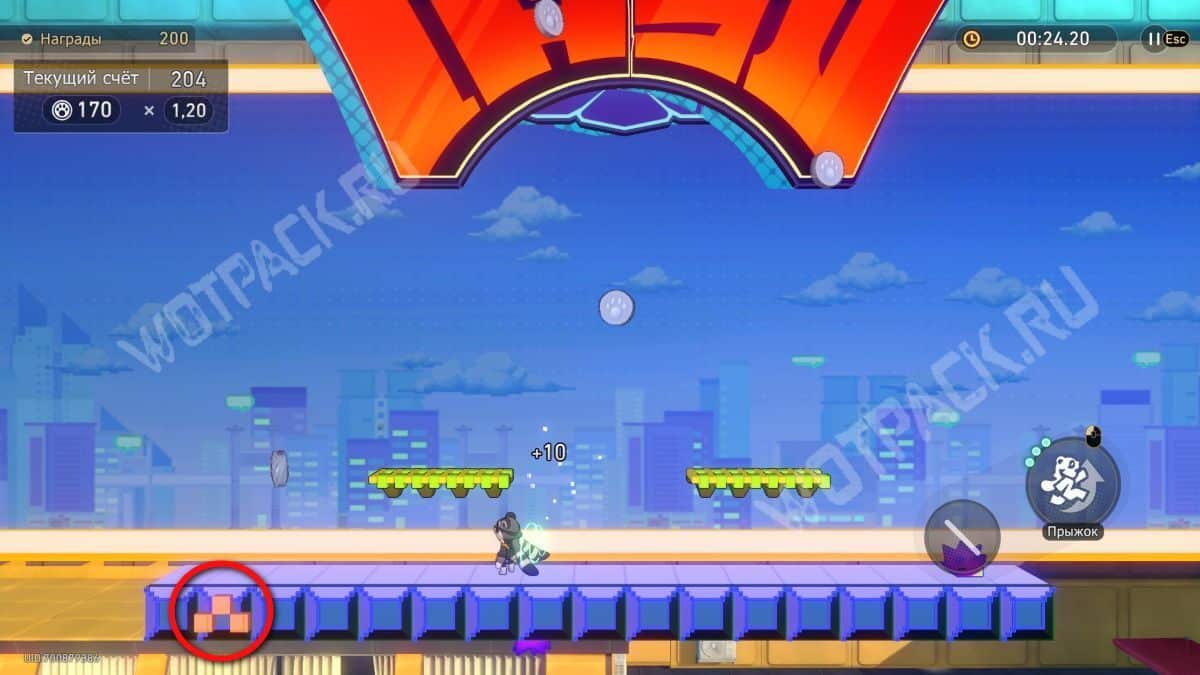 Перейдите на «@Площадь развлечений» и осмотрите восточную зону у кафе и киосков — внутри «Двухмерный прыжок! Сложность III» находится ещё один уровень с колонками.