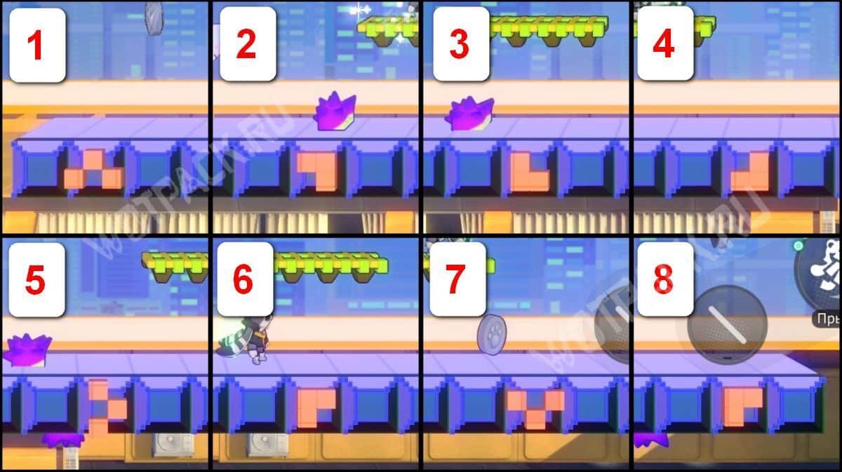 В открывшемся пространстве потребуется пройти несколько полос препятствий с исчезающими время от времени плитами.