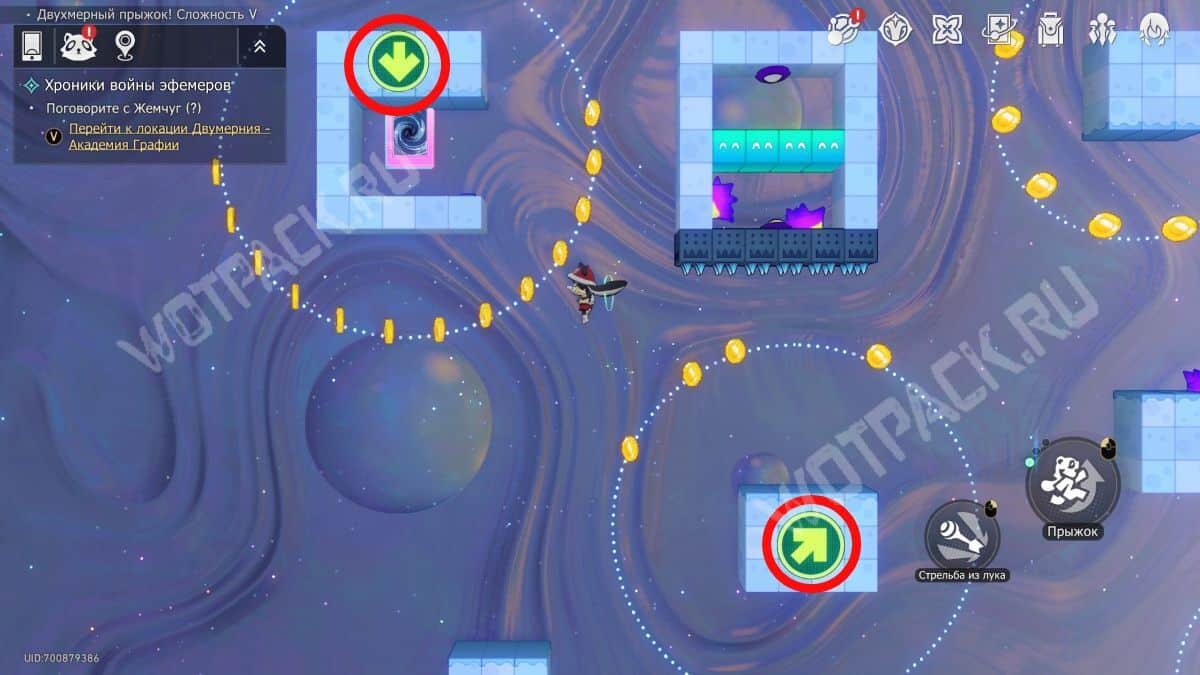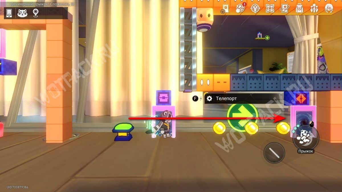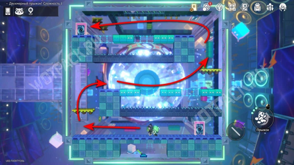 Получившуюся комбинацию можно сыграть в любой 2D-комнате: ↑↗→↑↙↓↘↙.