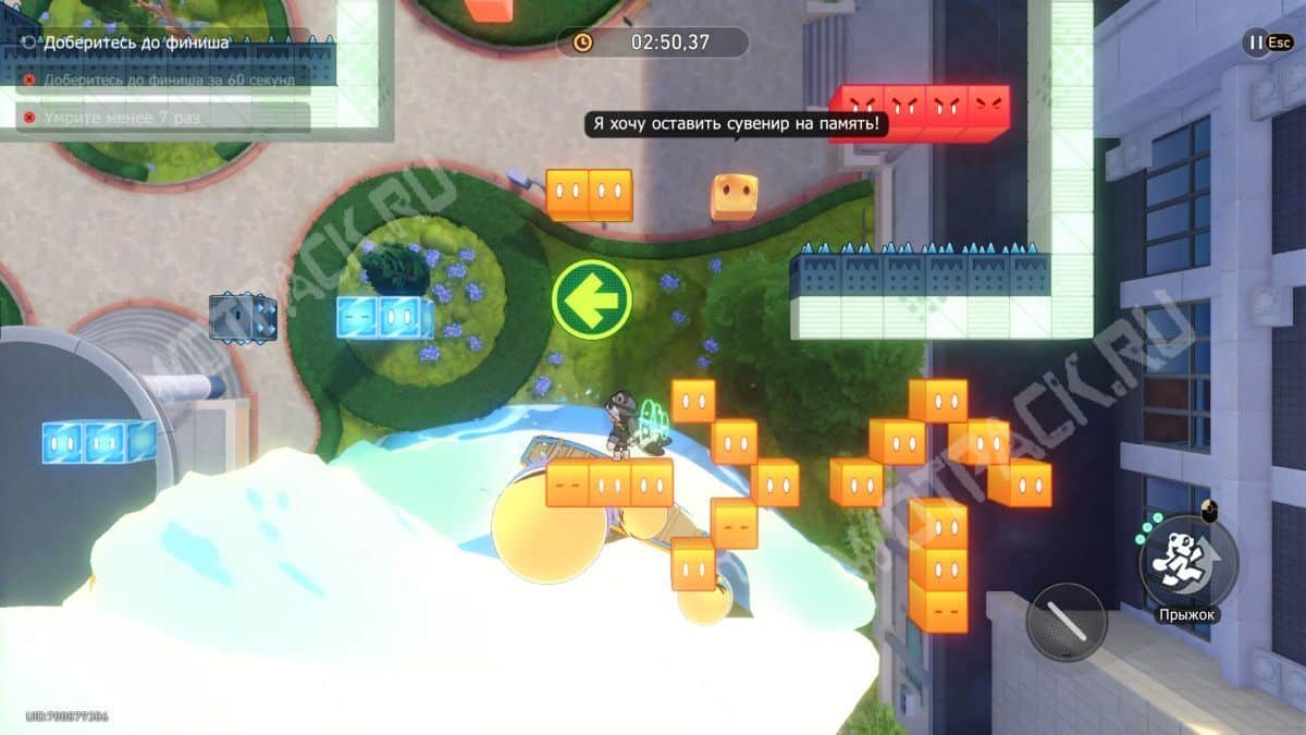 На бонусном уровне освободите существо из блоков, несколько раз нажав на кнопку. За действие заработаете трофей «Вариация рая: Ганс — мой ёж».