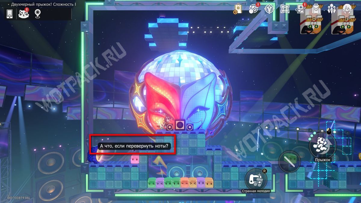 Вернувшись в ту же область, обнаружите эфемера, говорящего фразу «А что, если перевернуть ноты?». Последуйте его подсказке и сыграйте «Диско 1999» наоборот.